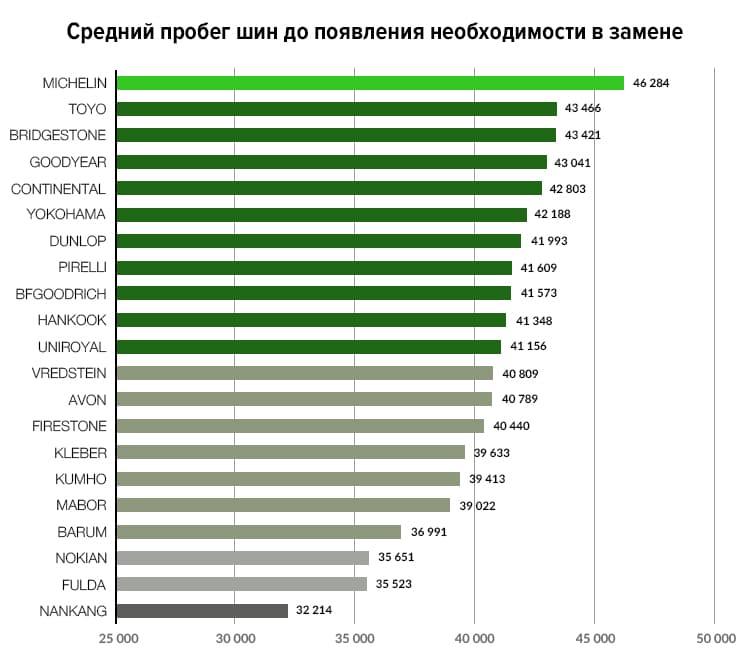 На основе собранных данных о реальном пробеге тех или иных покрышек, был составлен рейтинг долговечности. Одновременно были определены причины покупки владельцами авто новых покрышек. Оказалось, что 73% испанцев предпочитают совершать покупку новой резины при достижении существующим комплектом высокой степени износа. Только 17% проводят смену своевременно для сохранения безопасности, а остальные были вынуждены провести смену из-за выхода покрышек из строя.